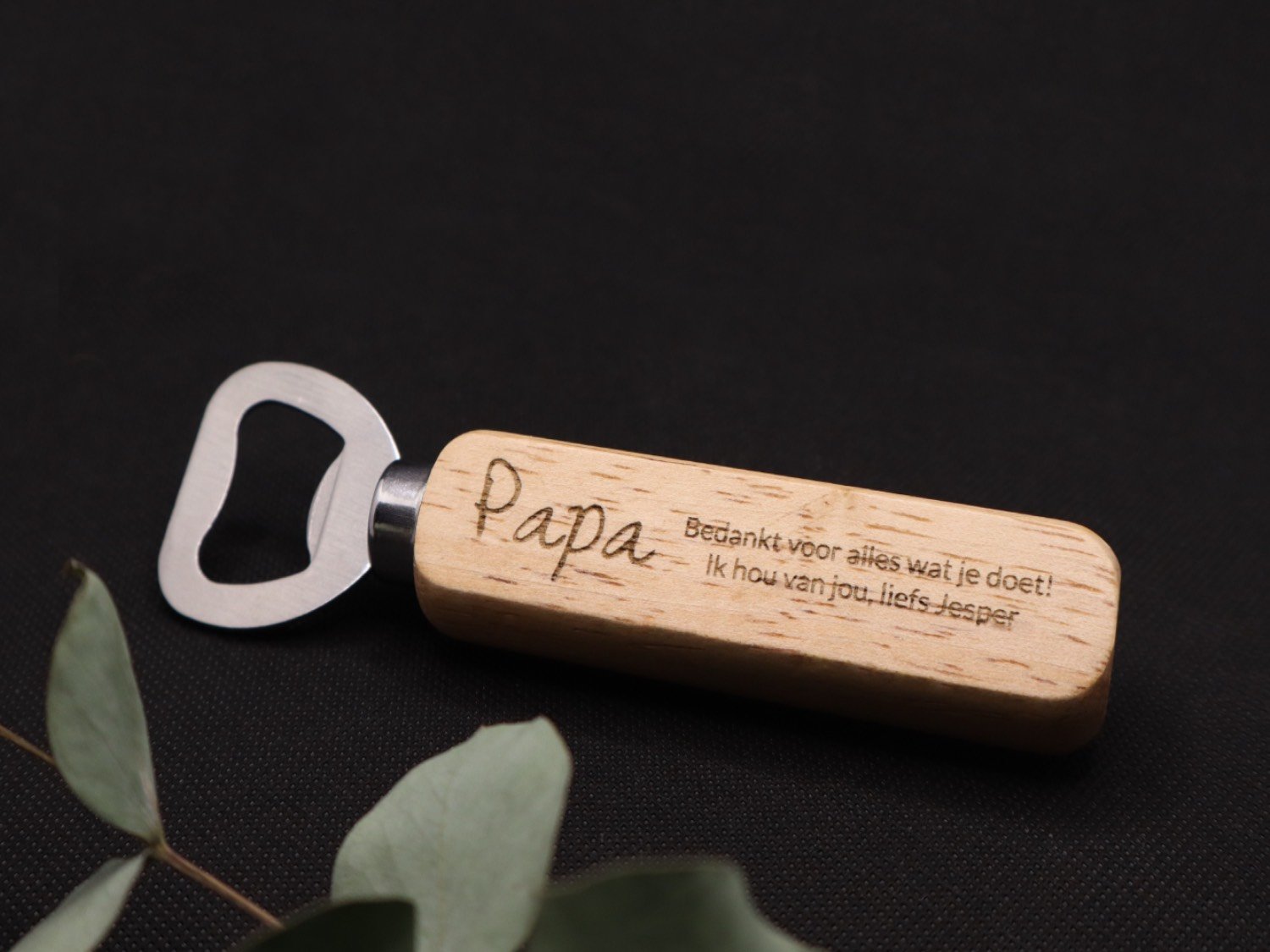 Ga all-in met deze gepersonaliseerde flesopener van hout. Upload je eigen ontwerp of laat er één maken en creëer een uniek kado dat net zo persoonlijk is als het moment waarvoor je ’m geeft.